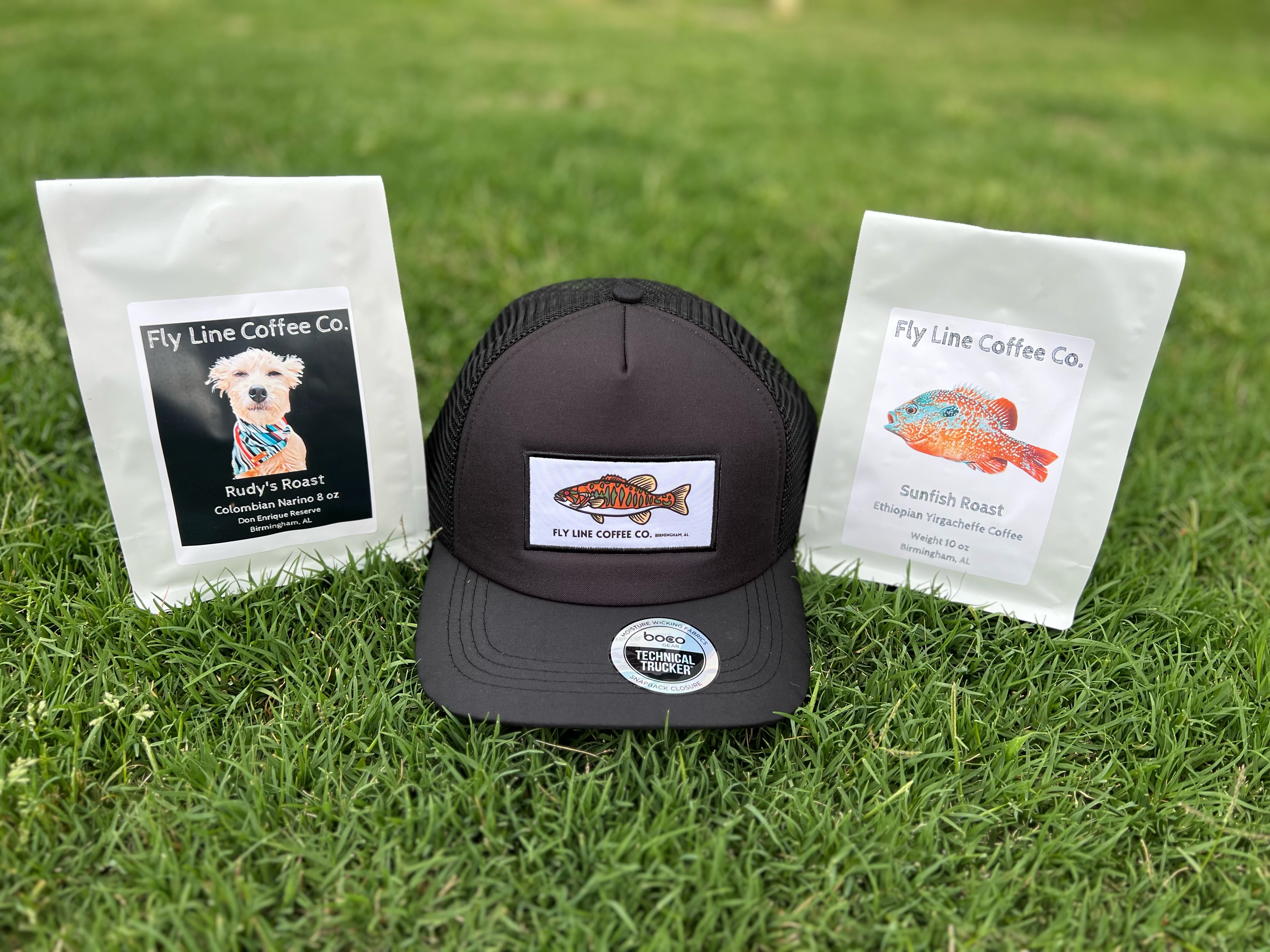 - One bag of Colombian coffee called the Rudy’s Roast from Fly Line Coffee Co., a sweet coffee reminiscent of chocolate and cherries. Also included is a bag of Ethiopian coffee called the Sunfish Roast, a tea-like coffee with flavor notes of pears, pineapple, and plum. This door prize also includes a BOCO Gear Fly Line Coffee Co. hat!