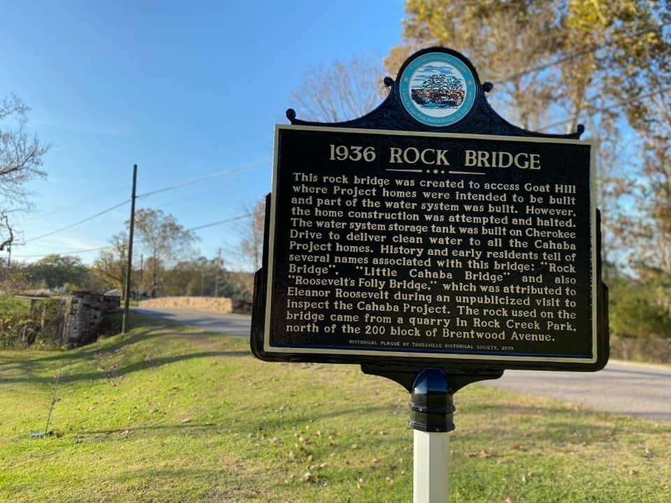 The Rock Bridge was created to access Goat Hill where Cahaba Project homes were intended to be built and part of the water system was built. However, the home construction was attempted and halted. The water system storage tank was built on Cherokee Drive to deliver clean water to all the Cahaba Project homes.